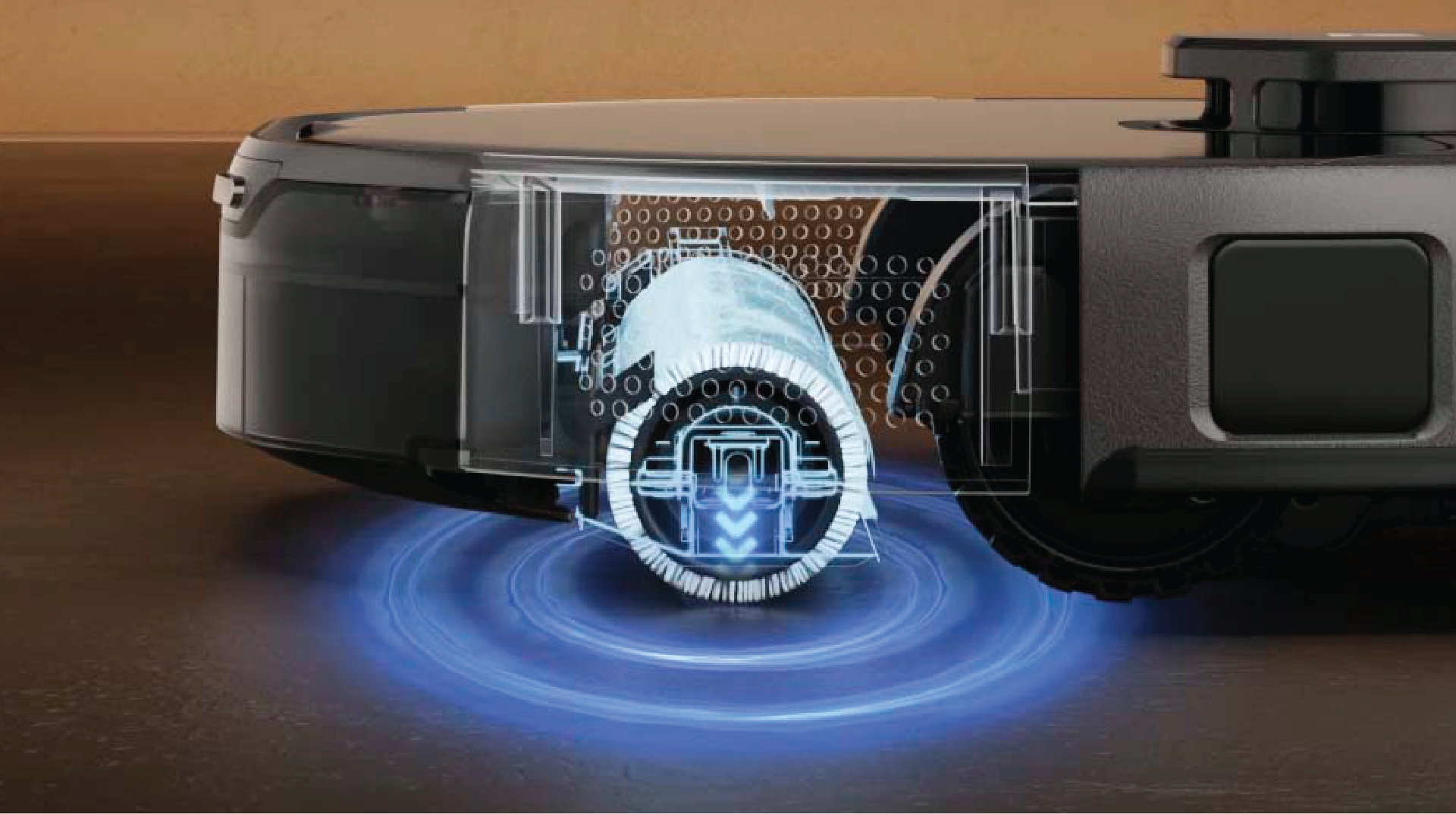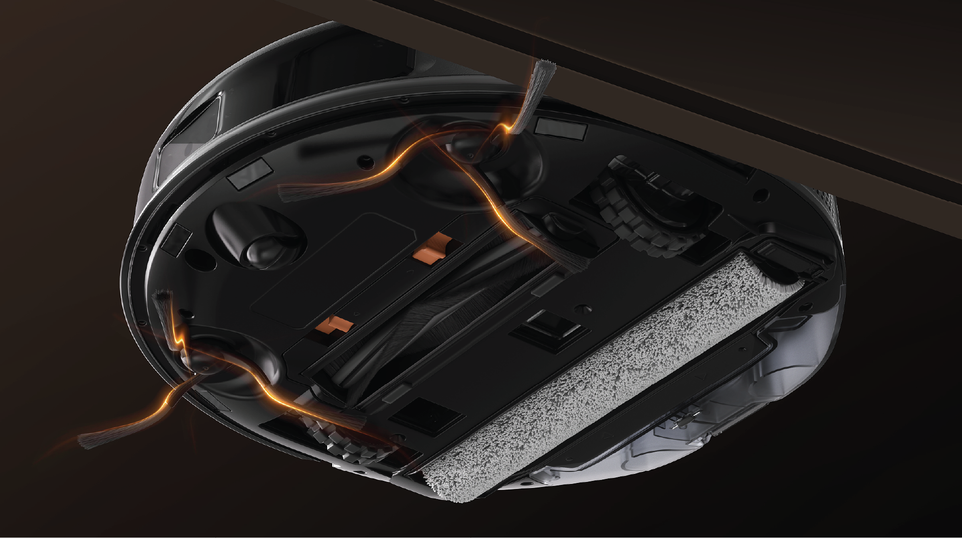 45° dual side brushes reach into corners, capturing debris and preventing hair-wraps.