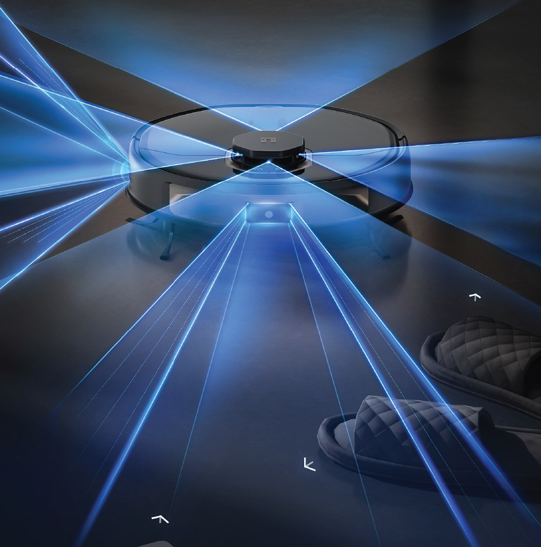 Precision navigation powered by AI LDS Space Sensing to expertly dodge shoes, cables, and pets.